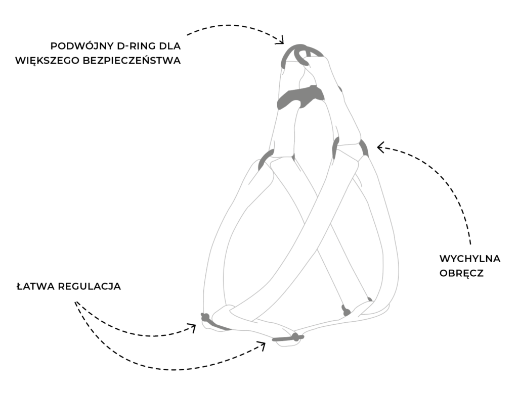 Szelki typu step-in zapewniają łatwe i wygodne zakładanie. Zapięcie między łopatkami pozwala na szybkie wkładanie i zdejmowanie, bez powodowania zbędnego stresu u czworonoga. Dwa mocne stalowe półkółka do przypięcia smyczy gwarantują bezpieczeństwo w każdej sytuacji. Duży zakres regulacji obu obwodów oraz paska na mostku pozwala na dokładne dopasowanie szelek do wymiarów psa.
